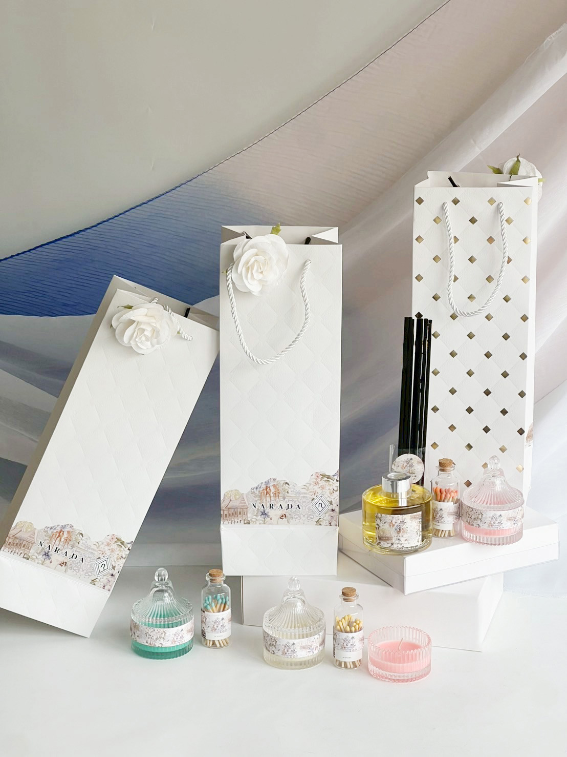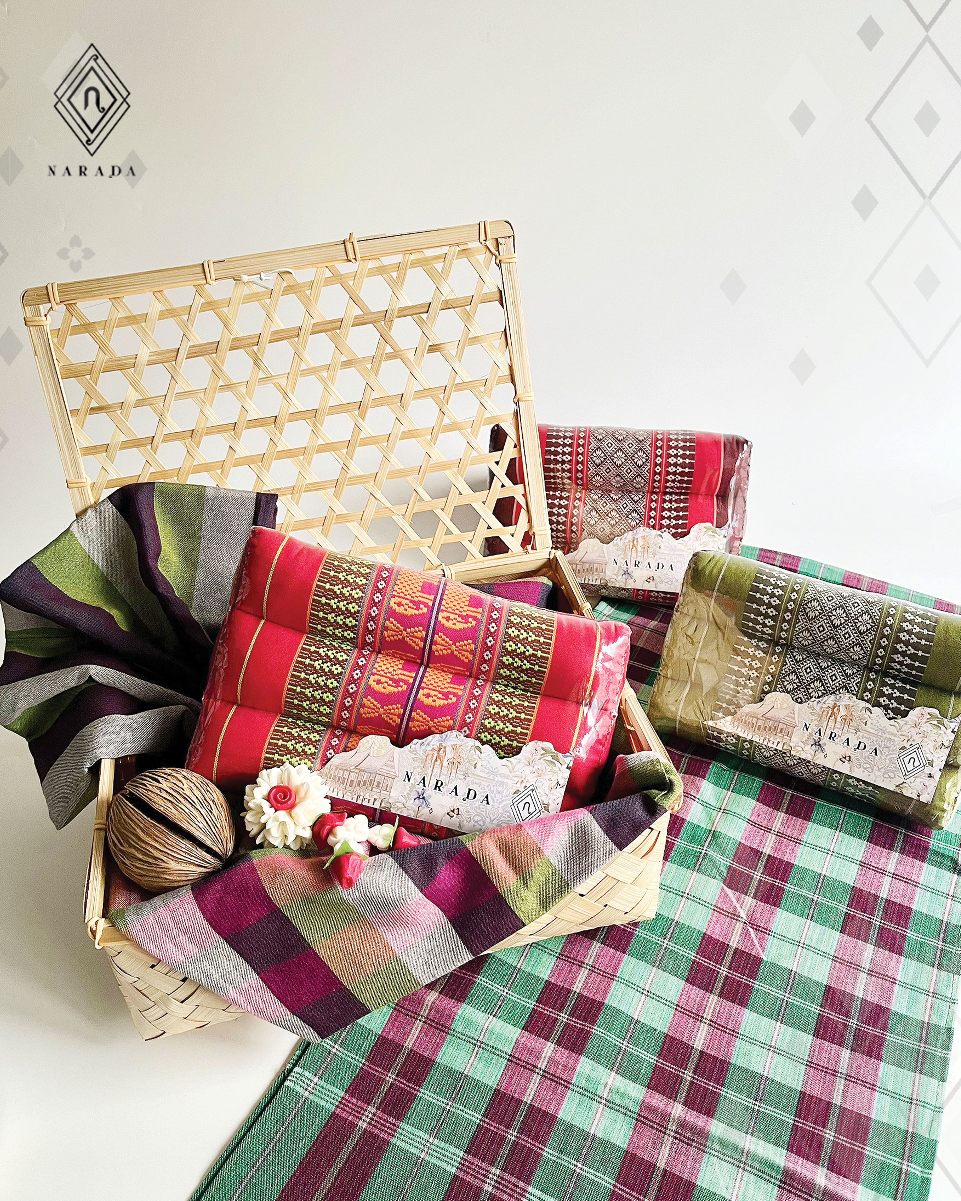 เรารวมสินค้าแฮนด์เมดไทยคุณภาพ เช่น ผ้าพันคอไหม พวงมาลัยผ้า ชุดของขวัญพรีเมียม ของแต่งบ้านกลิ่นหอม จัดเรียงในกล่องของขวัญอย่างประณีต