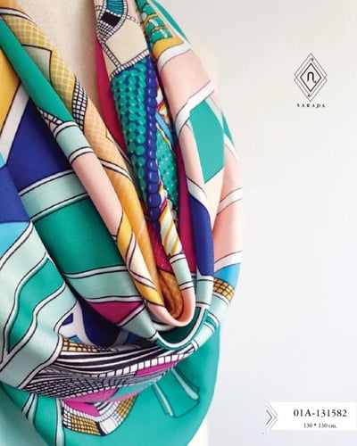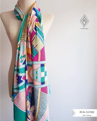 เป็นผ้าไหมผสมโพลีเอสเตอร์  ที่มีดีไซน์สวยงาม หรูหรา ได้แรงบันดาลใจจากผ้าพันคอแบรนด์แฟชั่นดังๆเช่น จากผ้าพันคอ Hermes, Gucci, Louis Vitton, Fendi, Burberry, Zara สามารถคลุมไหล่ สวย พันคอ เก๋ๆ เป็นผ้าพันคอที่ทำเป็นเสื้อ เกาะอก เป็นผ้าพันคอเสื้อไหล่เดียว พันไปงานเก๋ๆ ผ้าพันคอคลุมชายหาด ผืนใหญ่ สามารถกันแดด กันลม เวลาไปทะเล ปูผ้าที่ชายหาด สารพัดประโยน์ หรือเป็นผ้าพันคอคลุมศีรษะ โบฮิเมียม เป็นฮิปเสดร์