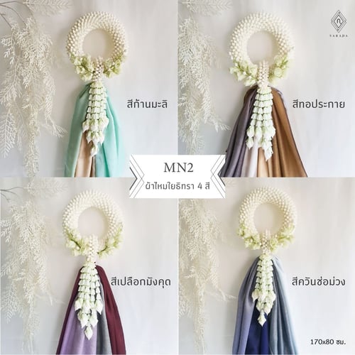 ผ้าที่ใช้ทำมาลัยผ้าพันคอ มาลัยผ้าคลุมไหล่ข้อพระกรเป็น ผ้าพันคอ ผ้าคลุมไหล่ไหมใยธิทรา 4 สี