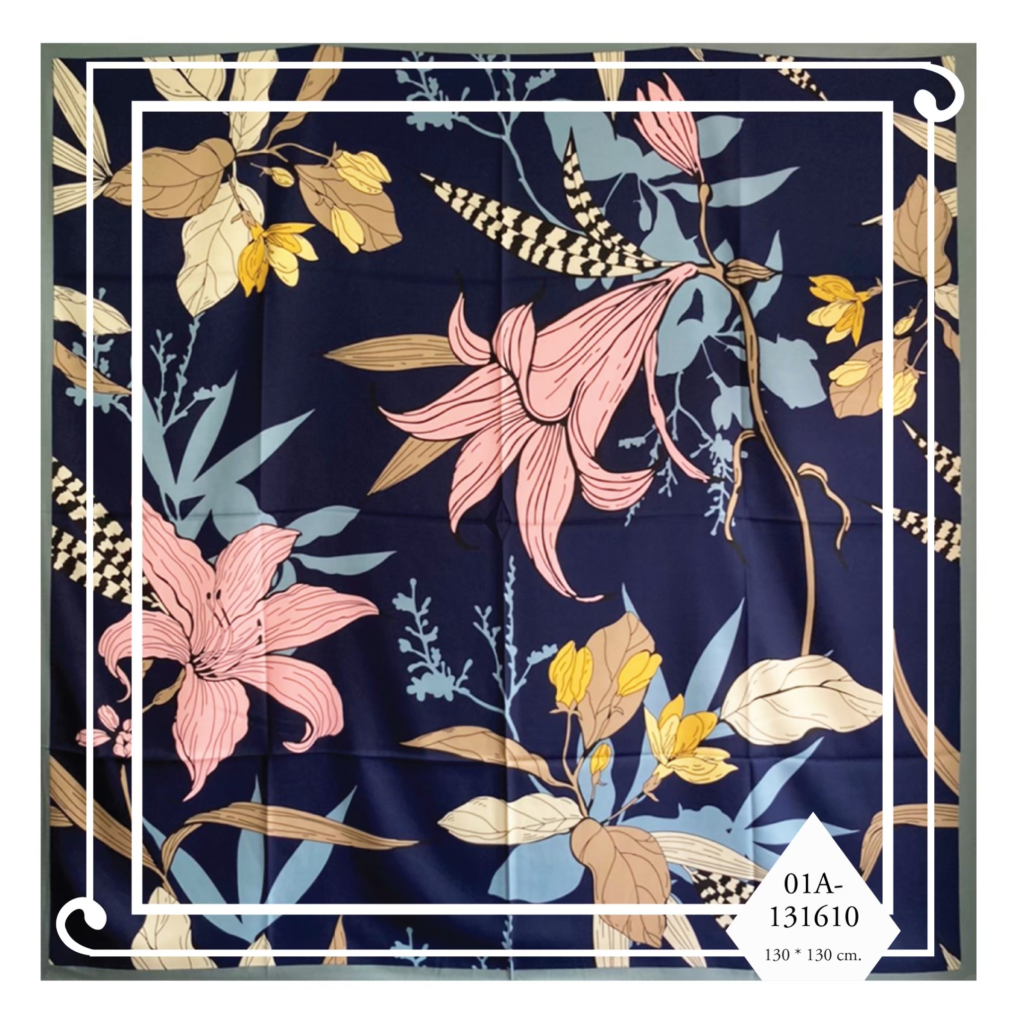 ผ้าพันคอ ผ้าคลุมไหล่ผืนสวย ร้อยเรียงพับเป็นพวงมาลัยขอพระกร ล้อมรอบด้วยดอกไม้ประดิษฐ์งานฝีมือคุณภาพชาววัง เป็นพวงมาลัยผ้าพวงสวย ปราณีต จัดใส่ในกล่อง พร้อมให้เป็นพวงมาลัยผ้าให้ผู้ใหญ่ในโอกาสต่างๆ