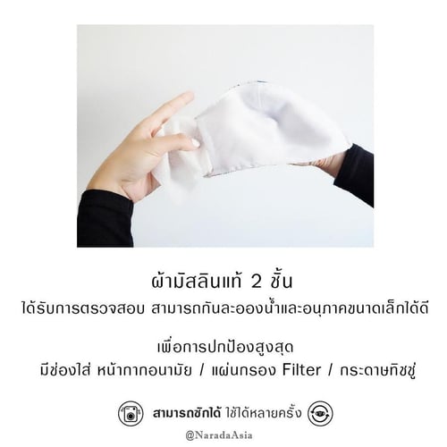 - ผ้าฝ้ายมัสลิน 2 ชั้น มีประสิทธิภาพในการกันละอองน้ำได้ดีที่สุด