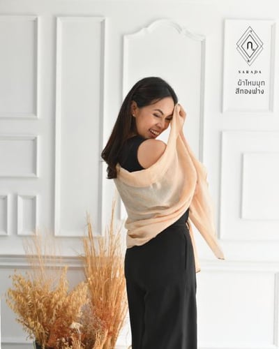 - ผ้าคลมไหล่ เนื้อผ้าดุจใยไหม เงางาม เบาบางแต่อบอุ่น