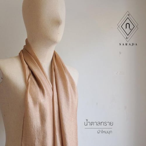 ผ้าพันคอ ผ้าคลุมไหล่ ผ้าไหมมุกสีน้ำตาล น้ำตาลทราย