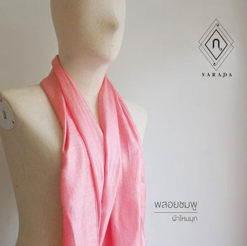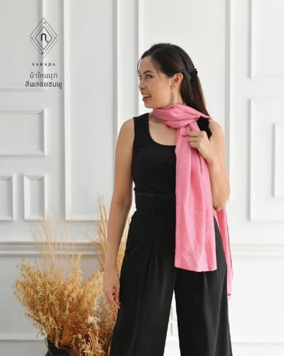 ผ้าพันคอ ผ้าคลุมไหล่ ผ้าไหมมุกสีชมพูอ่อน พลอยชมพู
