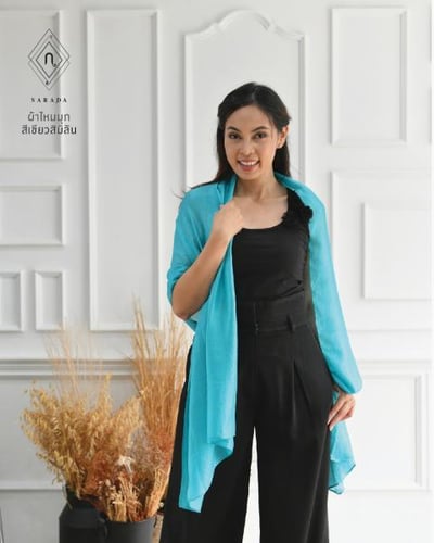 - ผ้าคลมไหล่ เนื้อผ้าดุจใยไหม เงางาม เบาบางแต่อบอุ่น