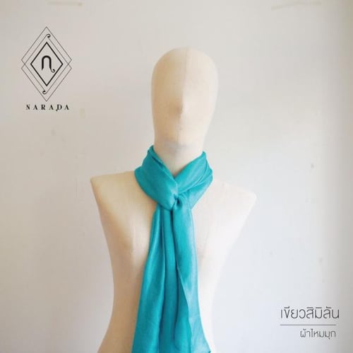 ผ้าพันคอ ผ้าคลุมไหล่ ผ้าไหมมุกสีเขียว เขียวสิมิลัน