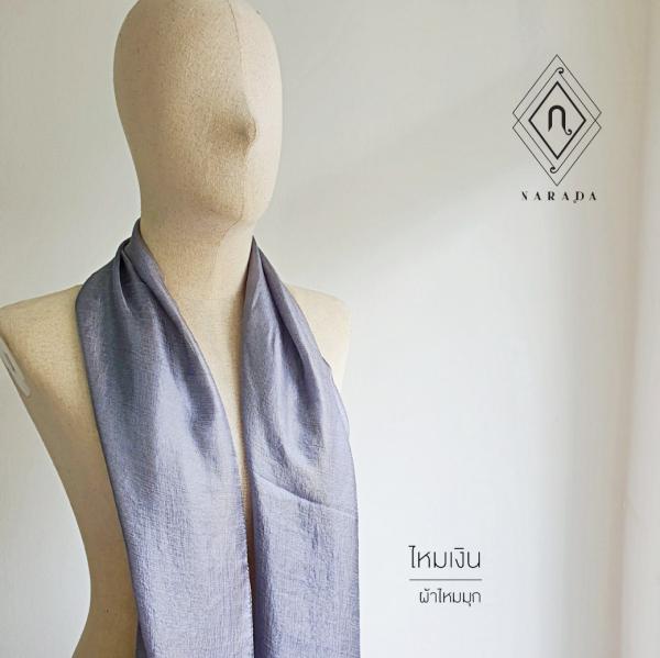 ผ้าพันคอ ผ้าคลุมไหล่ ผ้าไหมมุกสีเทาเงิน ไหมเงิน