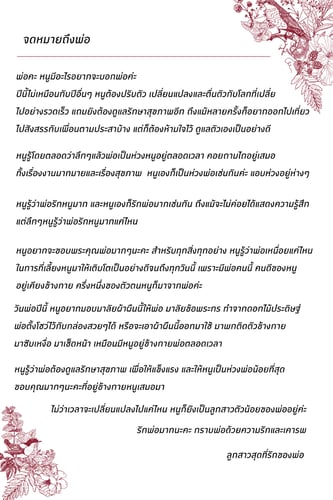 ให้วันพ่อปีนี้ พิเศษกว่าทุกๆปี มาตอบแทนพระคุณพ่อ ที่พ่อได้เลี้ยงดูเรามา ด้วยมาลัยผ้าในกล่องสวยหรู มาลัยผ้าทำจากดอกไม้ประดิษฐ์ ร้อยเรียงอย่างสวยงาม ไม่เหี่ยว ไม่เฉา ไม่เน่า บรรจุในกล่องสวยงาม ด้านล่างเป็นผ้า ที่พ่อสามารถแกะออกมา พกติดตัวข้างกาย พร้อมซับเหงื่อ และพลอยได้คิดถึงเราด้วย