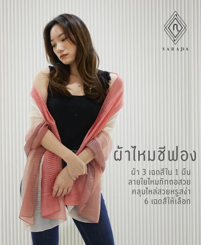 ผ้าพันคอสวย ๆ ผ้าคลุมไหล่สวย ๆ ผ้าคลุมไหล่สไตล์ผ้าไหมไทย ณราดา NaradaAsia ผ่านการออกแบบและตัดเย็บด้วยฝีมือปราณีต
