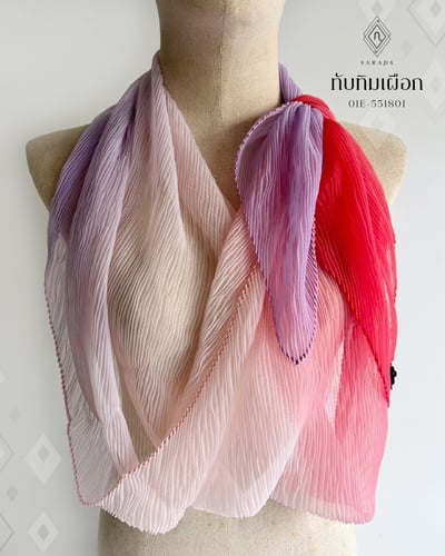 ผ้าพลีทชีฟองสลับสี จาก ณราดา ผืนพันคอเล็ก เบาสบาย พริ้วไหวไปตามลม ผลิตจากผ้าชีฟองที่ให้ความรู้สึกบางเบา ช่วยให้การแต่งตัวของคุณสนุกและโดดเด่นยิ่งขึ้น ใช้พันคอเก๋ๆ หรือคลุมไหล่สวยๆ เป็นเครื่องประดับที่ต้องมีติดตู้เสื้อผ้า ใส่กับเสื้อผ้าสีเรียบ เพิ่มความสนุกและมีสไตล์ได้อย่างง่ายดาย ผ้าพลีทชีฟอง นี้เหมาะอย่างยิ่งสำหรับสภาพอากาศร้อนของเมืองไทย ใช้เองก็ดี หรือจะมอบเป็นของขวัญให้เพื่อนก็เหมาะสม ทุกผืนบรรจุในแพคเกจสวยงาม พร้อมมอบความประทับใจในทุกโอกาส