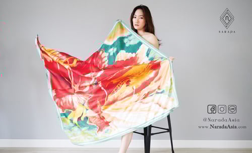 ผ้าพันคอ ผ้าคลุมไหล่ณราดา Narada เป็นผ้าไหมผสมโพลีเอสเตอร์ ที่มีดีไซน์สวยงาม หรูหรา ได้แรงบันดาลใจจากผ้าพันคอแบรนด์แฟชั่นดังๆเช่น จากผ้าพันคอ Hermes, Gucci, Louis Vitton, Fendi, Burberry, Zara สามารถคลุมไหล่ สวย พันคอ เก๋ๆ เป็นผ้าพันคอที่ทำเป็นเสื้อ เกาะอก เป็นผ้าพันคอเสื้อไหล่เดียว พันไปงานเก๋ๆ ผ้าพันคอคลุมชายหาด ผืนใหญ่ สามารถกันแดด กันลม เวลาไปทะเล ปูผ้าที่ชายหาด สารพัดประโยน์ หรือเป็นผ้าพันคอคลุมศีรษะ โบฮิเมียม เป็นฮิปเสดร์