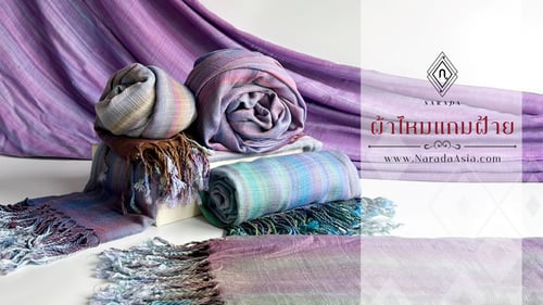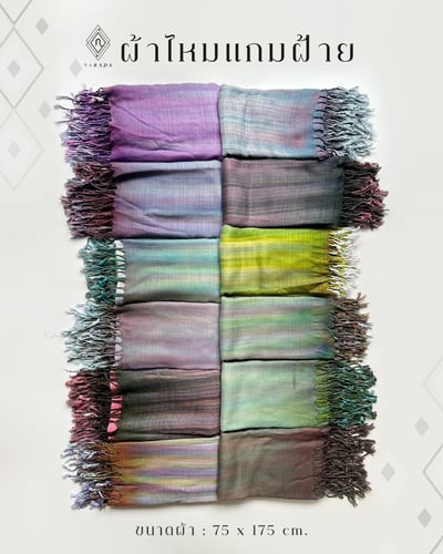 ผ้าไหมแกมฝ้าย ผ้าพันคอและผ้าคลุมไหล่ที่ถักทออย่างประณีต ถ่ายทอดความงดงามของผ้าทอพื้นบ้านภาคอีสาน ด้วยลายผ้าที่โดดเด่นและเป็นเอกลักษณ์ สะท้อนศิลปะท้องถิ่น เนื้อผ้านิ่ม สวมใส่สบาย สามารถใช้เป็นผ้าคลุมไหล่ที่สวยงามและดูโดดเด่นในทุกโอกาส ผ้าเสน่ห์ไทยเหมาะสำหรับใช้งานในชีวิตประจำวัน หรือมอบเป็นของขวัญที่มีคุณค่าสำหรับผู้ใหญ่ รวมถึงเป็นของที่ระลึกให้ชาวต่างชาติ ทุกผืนบรรจุในแพคเกจที่สวยงาม เหมาะกับการให้เป็นของขวัญในโอกาสพิเศษ สร้างความประทับใจแก่ผู้รับ