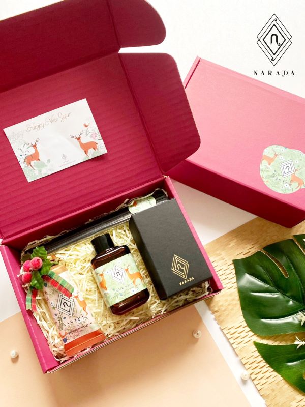 ของขวัญเซทแฮนด์ครีม ขนาด 35 ml. และ Aroma Diffuser ขนาด 50 ml. พร้อมตกแต่งในกล่อง ขนาด 14x20 cm.