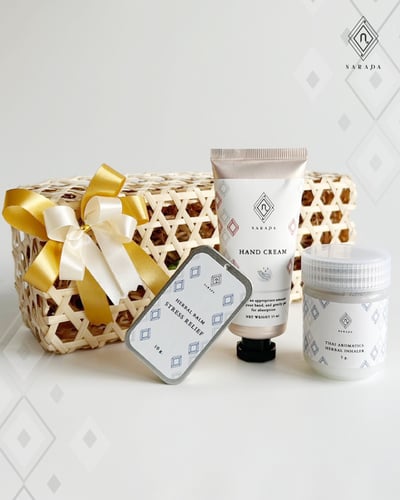 ของที่ระลึกไทยไทย เซทหอมละมุนพกพา กระเป๋าสตางค์ บาล์ม พิมเสน แฮนด์ครีม ในชะลอม