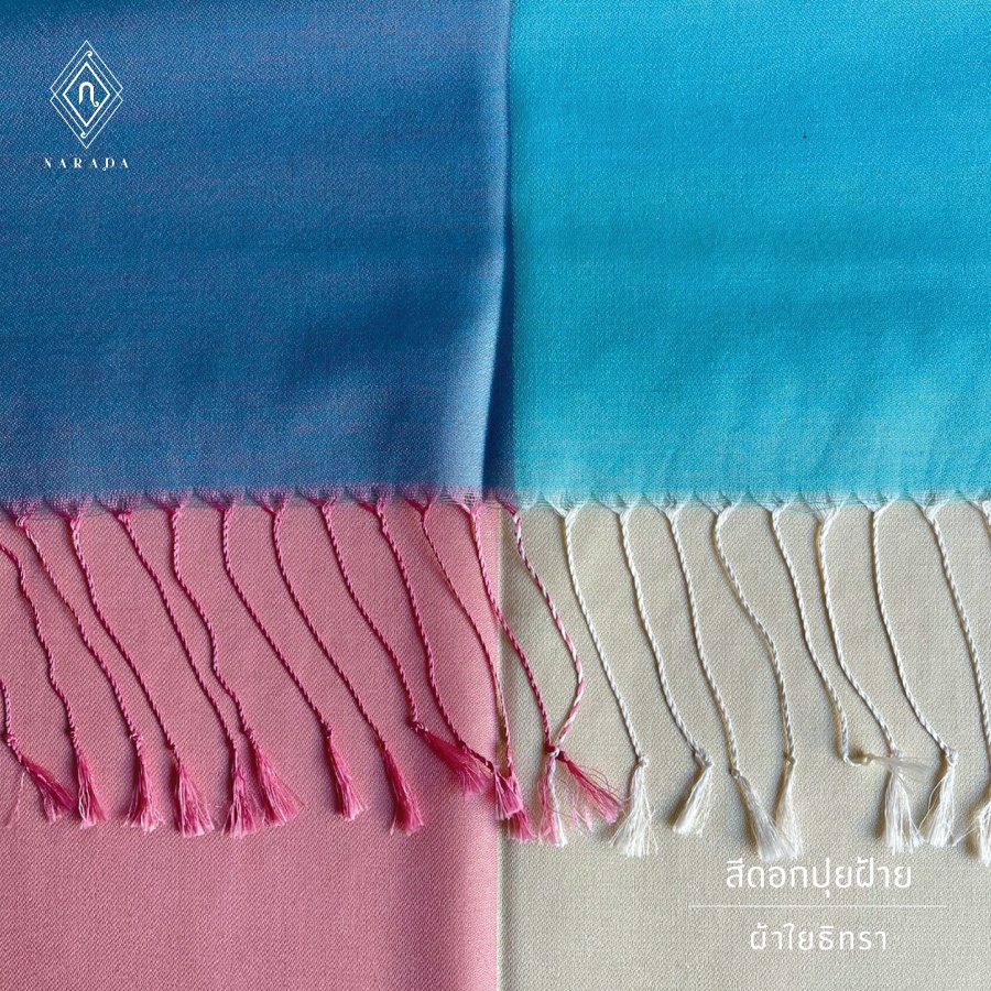 - ผ้าคลุมไหล่ผืนสวยทอจากใยไหม 4 สีใน 1 ผืน หน้าหลังเฉดเข้มอ่อน ทำให้ได้โทนสีถึง 8 โทนที่อยู่ด้วยกันอย่างลงตัว