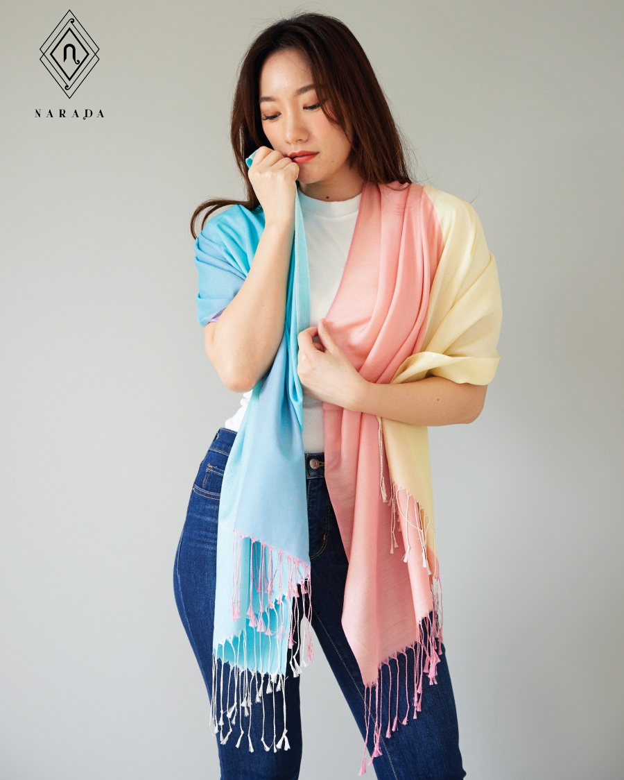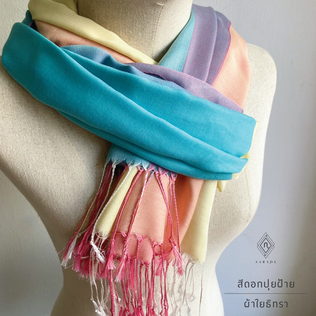 ผ้าคลุมไหล่ ผ้าพันคอ ผ้าใยธิทรา 4 สีใน 1 ผืน
