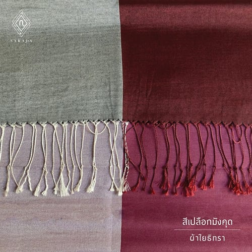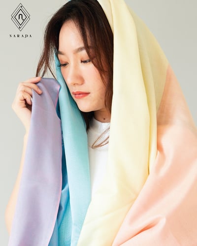 - ผ้าคลุมไหล่ผืนสวยทอจากใยไหม 4 สีใน 1 ผืน หน้าหลังเฉดเข้มอ่อน ทำให้ได้โทนสีถึง 8 โทนที่อยู่ด้วยกันอย่างลงตัว