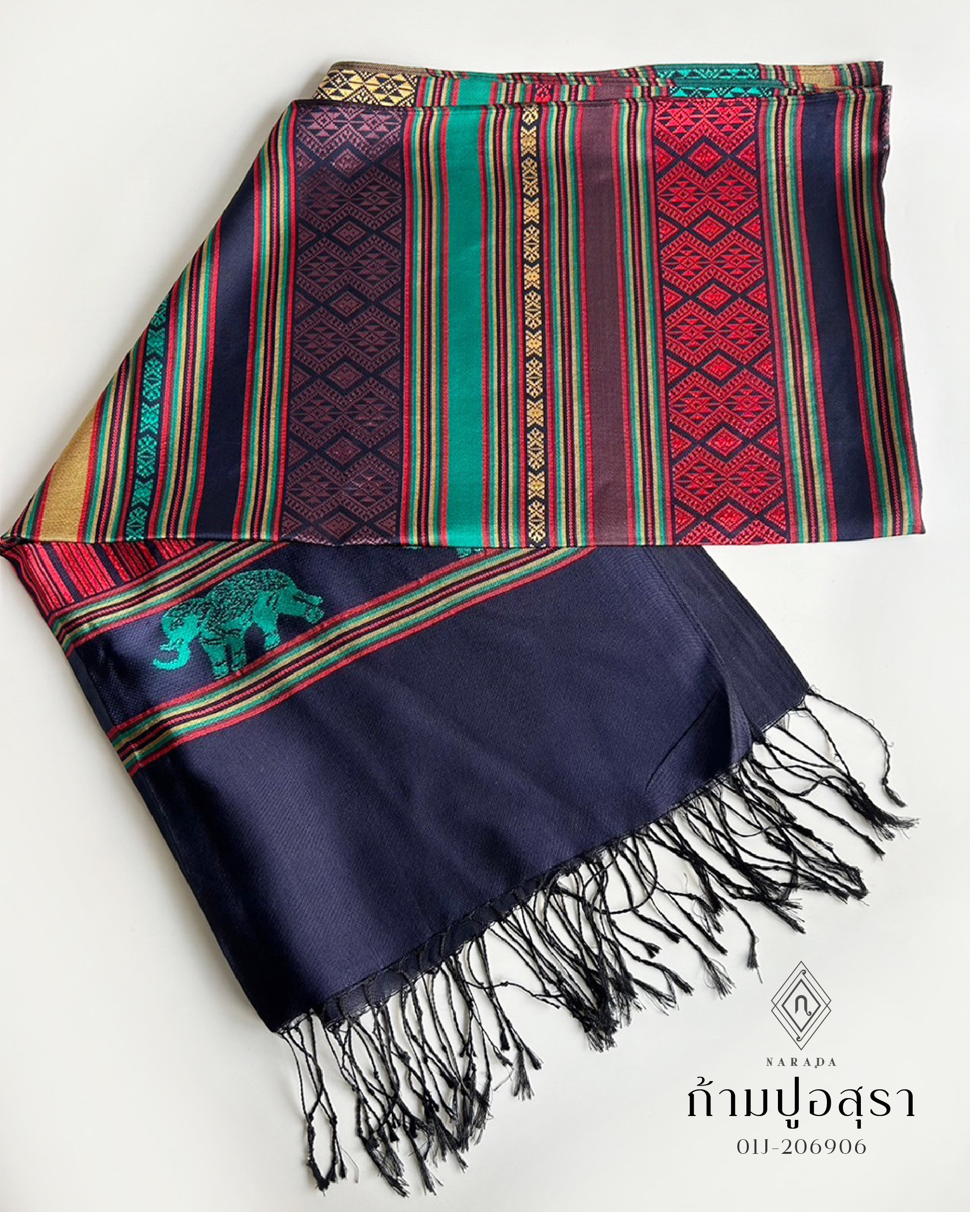 ผ้าคลุมไหล่ ผ้าพันคอ เนื้อผ้าถักทอลวดลายแบบไทยไทย