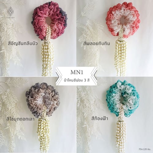 ผ้าที่ใช้ทำมาลัยผ้าพันคอ มาลัยผ้าคลุมไหล่ข้อพระกรเป็น ผ้าพันคอ ผ้าคลุมไหล่ไหมชีฟอง