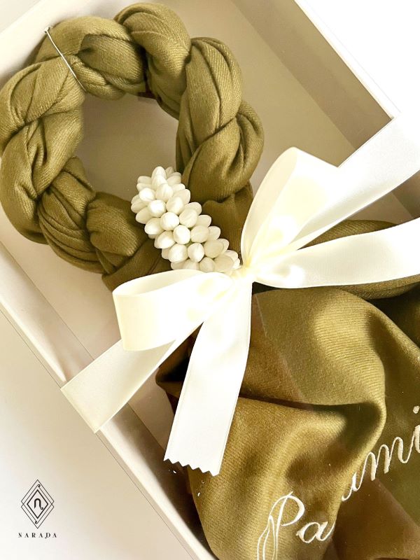 ของขวัญมาลัยผ้าพันคอแคชเมียร์ มะลิล้อม ปักชื่อ