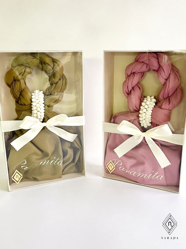 ของขวัญชิ้นเดียวในโลก ผ้าพันคอปักชื่อในกล่องสวยพร้อมมะลิล้อมเป็นมาลัยมอบให้ผู้ใหญ่