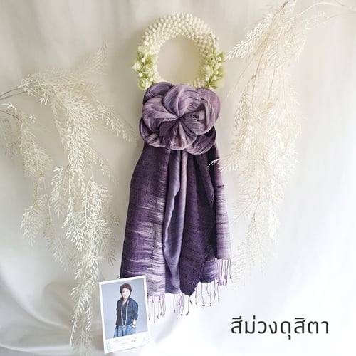 ผ้าที่ใช้ทำมาลัยผ้าพันคอ มาลัยผ้าคลุมไหล่ข้อพระกรเป็น ผ้าไหมแท้ ผืนสวยทักทองานฝีมืออย่างปราณีต ไล่เฉดสีอย่างสวยงาม