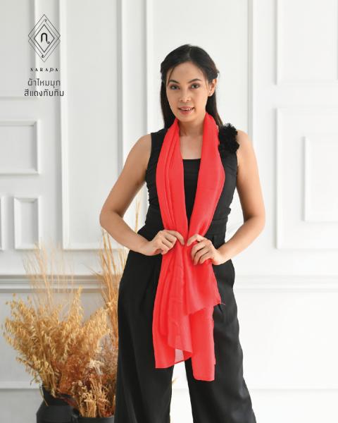 ผ้าพันคอ ผ้าคลุมไหล่ ผ้าไหมมุกสีแดง แดงทับทิม