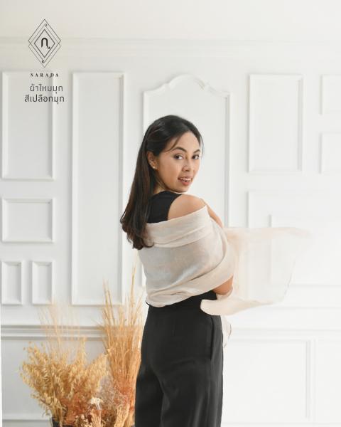 - ผ้าคลมไหล่ เนื้อผ้าดุจใยไหม เงางาม เบาบางแต่อบอุ่น